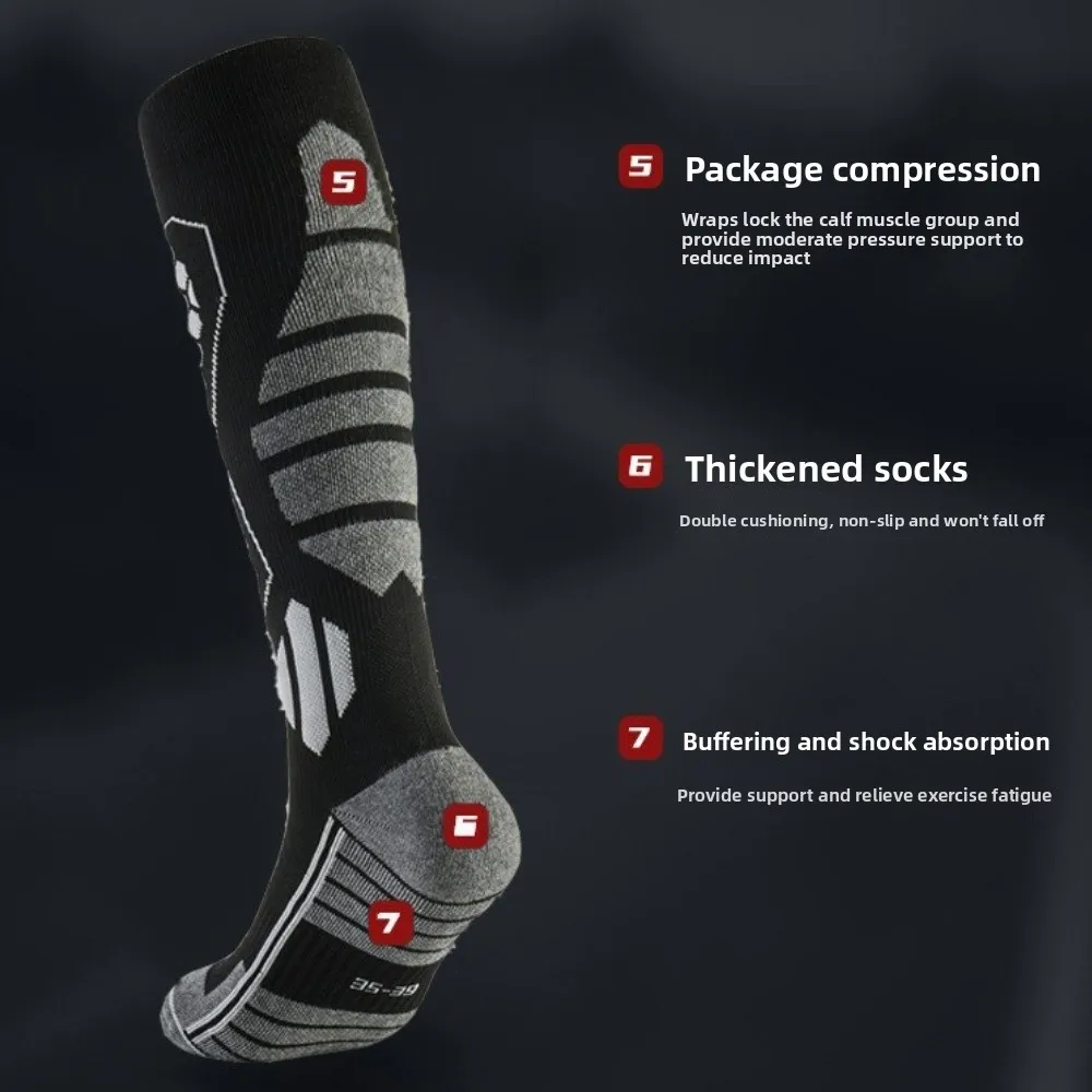 New Thickened Ski Socks Breathable Thermal Knee High Socks Moisture-wicking Anti-slip Snowboard Stockings for Winter Sports